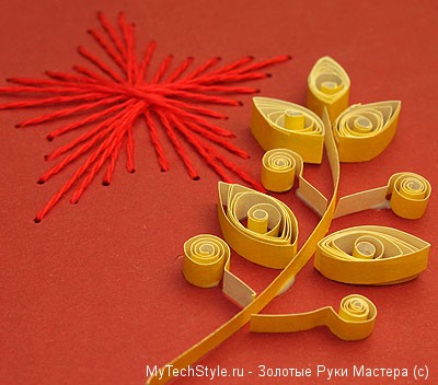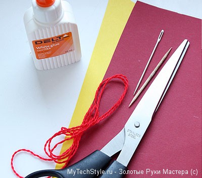 Для изготовления листа лавра, подготовьте цветную бумагу подходящего цвета: жёлтую, оранжевую или золотую. Нарежьте тонкие полоски шириной около 5 мм.