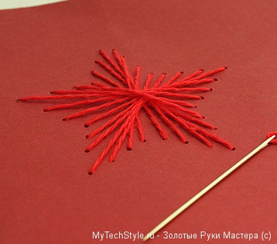 Чтобы вышивка не распустилась, обязательно закрепите нить с тыльной стороны звезды: